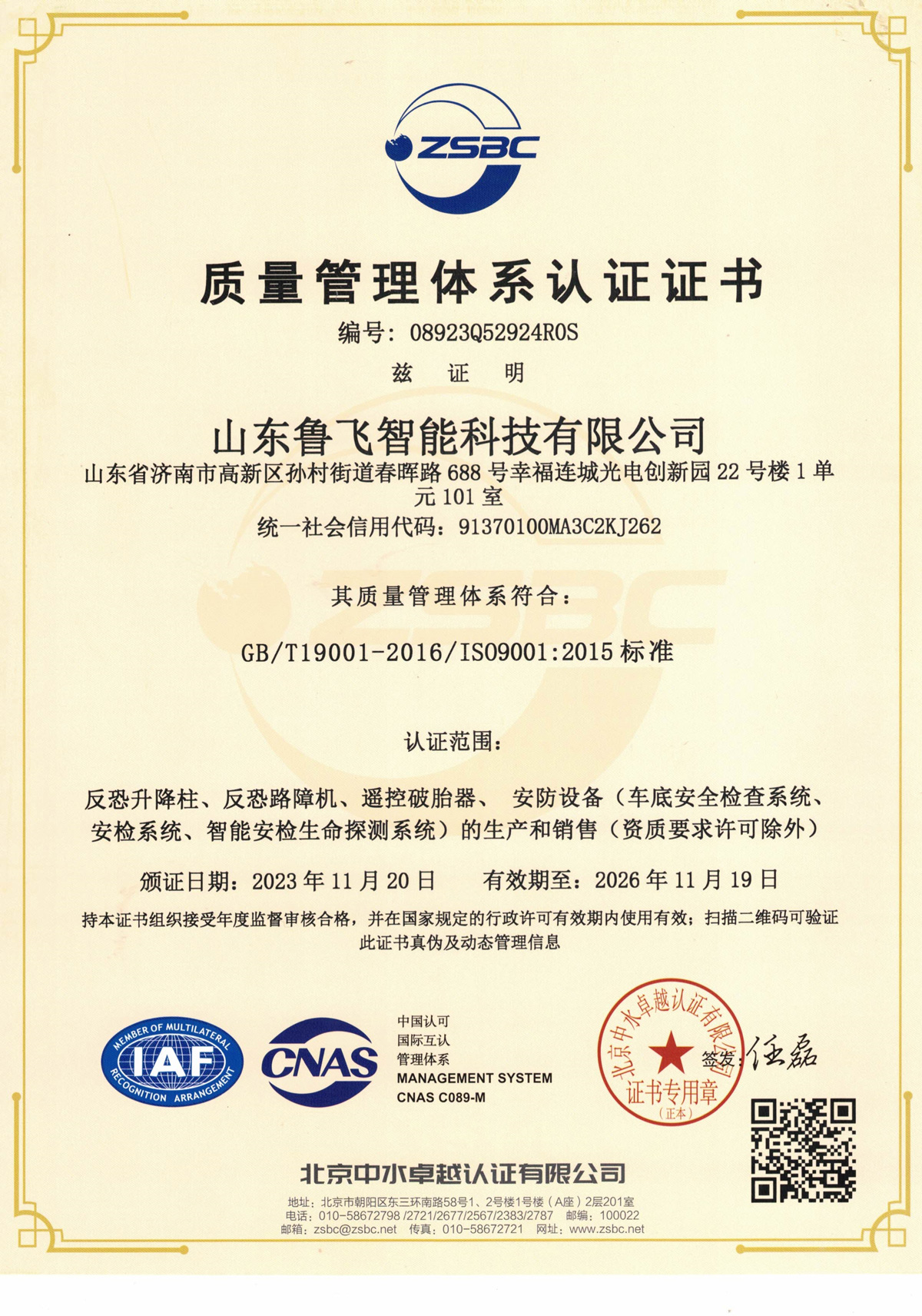 魯飛智能科技有限公司是集“設(shè)計(jì)、研發(fā)、生產(chǎn)、銷售”為一體的高新技術(shù)企業(yè)。專業(yè)從事反恐防暴升降路樁、防暴路障、破胎器、車底檢測(cè)系統(tǒng)、微震生命探測(cè)儀、安檢門、安檢機(jī)、拒馬、電動(dòng)伸縮門、無人機(jī)反制系統(tǒng)、無人機(jī)反制槍、車載無人機(jī)反制、便攜式無人機(jī)反制槍等系列產(chǎn)品的生產(chǎn)與銷售。